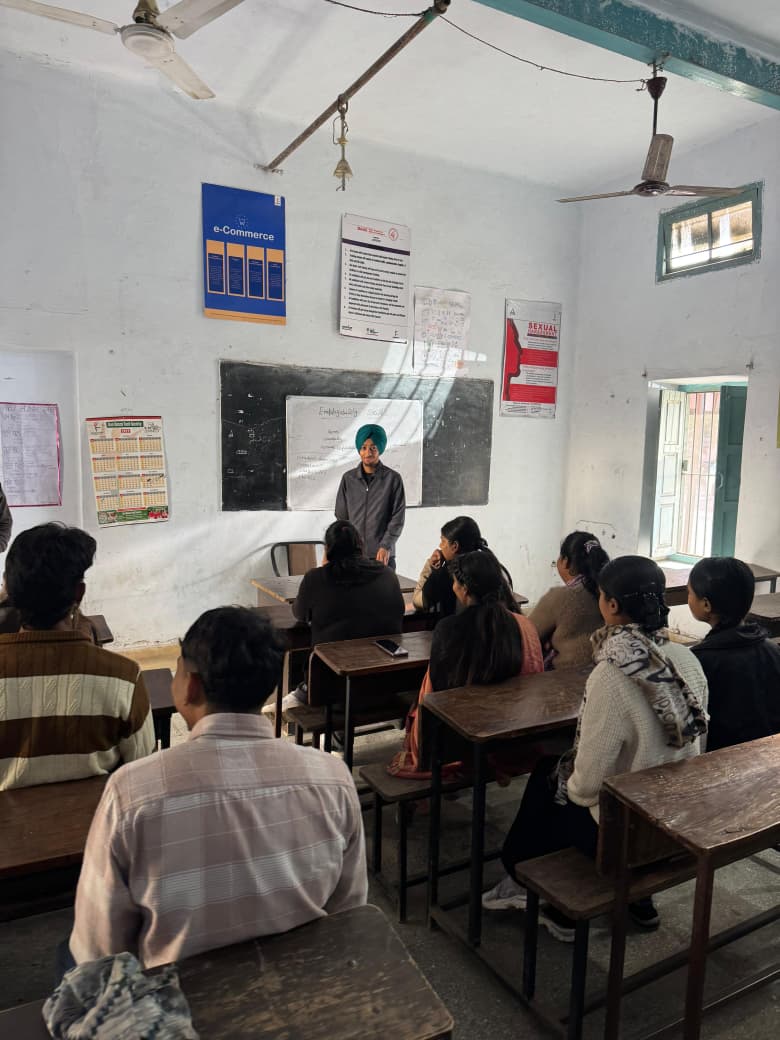 Mr. Sukhdeep also informed the trainees about different job roles in the e-commerce sector, including E-commerce Executive, Digital Marketing Executive, Product Listing Executive, Operations Executive, Customer Support Executive, and SEO or Social Media Executive. He guided the trainees about the skills required for these roles, such as communication skills, technical knowledge, problem-solving ability, and willingness to learn.